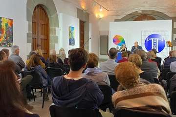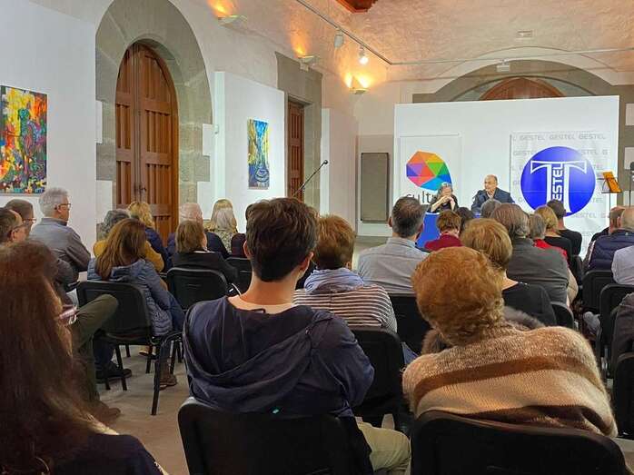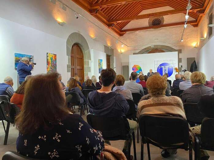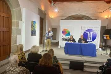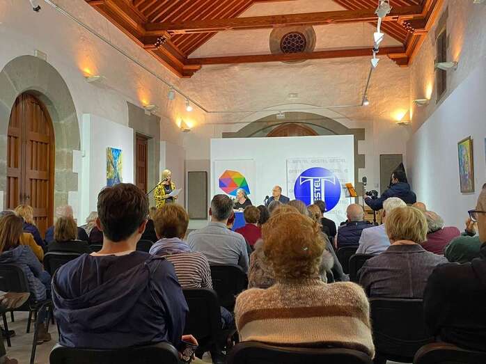 Telde.- La sala cultural de la ermita de San Pedro Mártir fue escenario este viernes por la noche de una velada poética y musical en la que se presentó el poemario Penumbra y Aire, de Elsa López y Luis Natera.