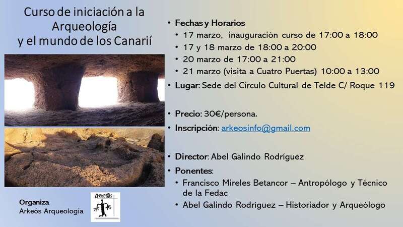 Telde.- El Círculo Cultural de Telde acogerá del martes 17 de marzo al sábado día 21 un curso de iniciación a la arqueología y al mundo de los canarií.