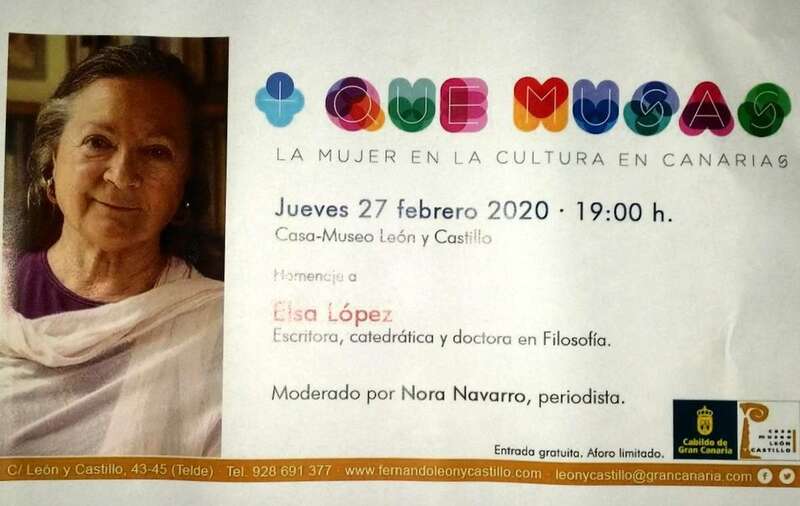 Elsa López, además de Catedrática y Doctora en Filosofía, es miembro correspondiente de la Real Academia de Ciencias, Bellas Letras y Nobles Artes de Córdoba. Embajadora de Buena Voluntad de la Reserva de la Biosfera Isla de La Palma ante la UNESCO. Medalla de Oro de Canarias 2016 y Premio Emilio Castelar 2019. Entre otros reconocimientos ha sido galardonada con el Premio de Poesía “Ciudad de Melilla”1987. Premio Internacional, de Poesía Rosa de Damasco, 1989. Premio Nacional de Poesía José Hierro” 2001. Premio de Poesía de la Ciudad de Córdoba “Ricardo Molina” 2005. Finalista del Premio Canarias de Literatura 2018. Está considerada como una de las voces más significativas del panorama poético español de las últimas décadas. Articulista en prensa y en revistas nacionales e internacionales es también, autora de más de una veintena de poemarios entre los que se encuentra “Penumbra”, obra publicada en 1985, que, con poemas del poeta, Luis Natera, con el título de “Penumbra y Aire” fue presentada hace unos días en la Ermita de San Pedro Mártir de Verona de Telde.