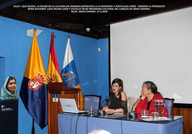 Telde.- La Casa-Museo León y Castillo de Telde celebró la trayectoria y el compromiso creativo de la escritora y editora Elsa López, en el marco del ciclo denominado ‘+Que musas’, que coordina la periodista Nora Navarro, con un salón de actos repleto de público que quiso sumarse al reconocimiento de esta mujer Embajadora de Buena Voluntad de la Reserva de La Biosfera Isla de La Palma ante la UNESCO y actual directora de Ediciones La Palma.