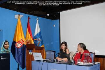 La tarde del jueves 27 de febrero se inicia el acto en la sede de la Casa Museo teldense con la intervención como entrevistadora y moderadora de la periodista Nora Navarro, que conduce esta cita + Que Musas, ciclo que dio comienzo el pasado año 2019, expone: