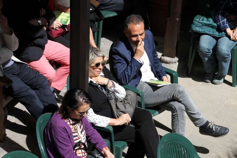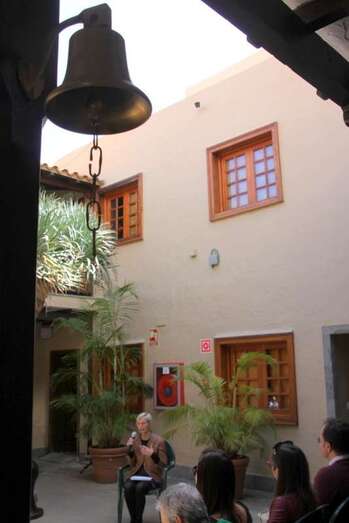 En el patio de la institución como segunda parte del acto la fotógrafa Teresa Correa autora de la imagen de la portada del libro Té Matcha, premiada con el Can de las Artes que concede el Cabildo de Gran Canaria, imagen de portada fragmento de instalación Jardín de Memoria (homenaje personal al libro La Cámara Lúcida de Roland Barthes de la Exposición Hablando de Pájaros y Flores).