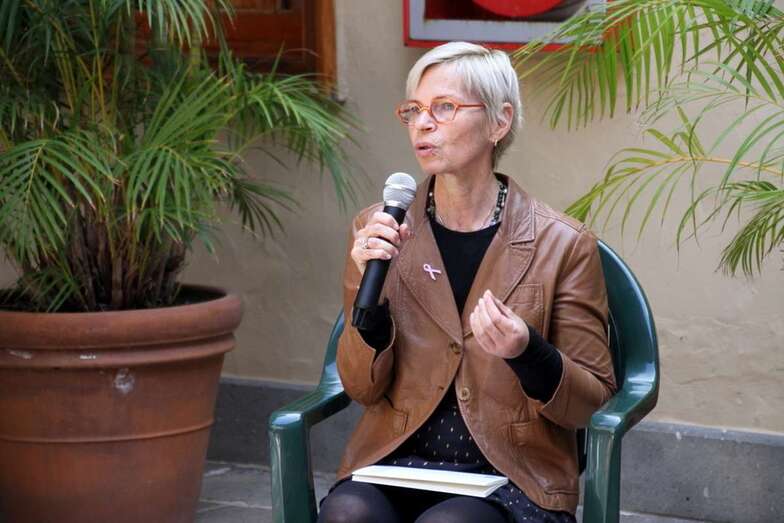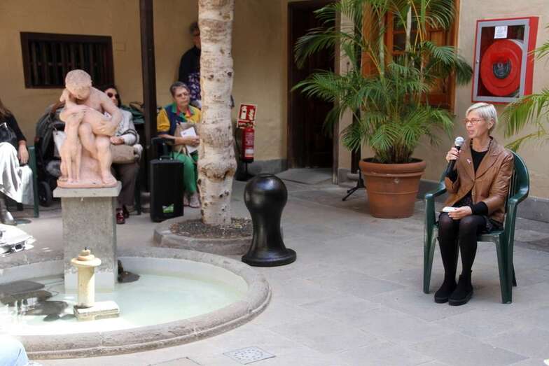Este acto de hoy es un acto por encima de todo es un homenaje a Chiqui, Angélica Castellano Suárez. Hemos elegido la Casa Museo León y Castillo por muchas connotaciones, porque ella se sentaba ahí, en muchos talleres de incognito, porque es un lugar con mucha magia y encanto que tiene este lugar, por su director Frank, y el anterior Antonio González, que me invitó a dar los primeros talleres aquí y se convirtió en mi casa. Y este espacio es como mi casa siempre.