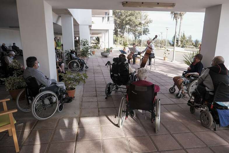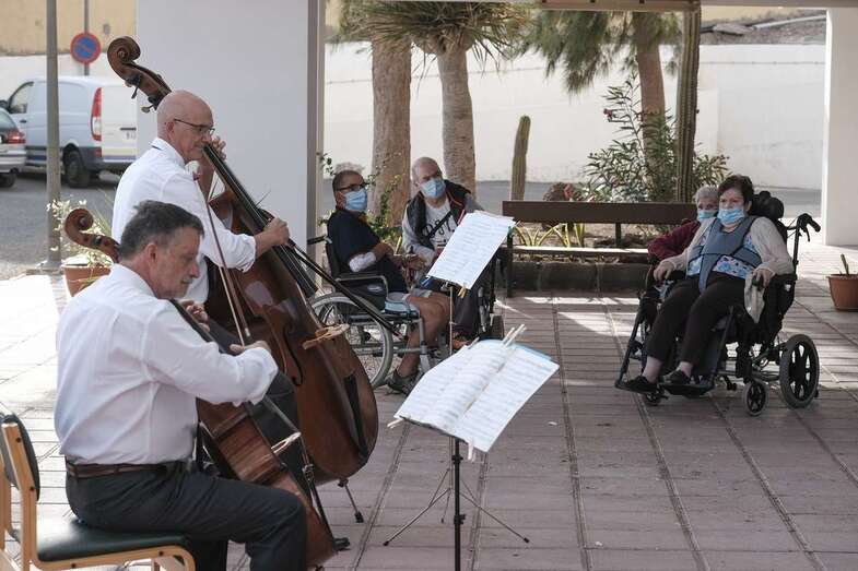 El programa, ofrecido en el patio de acceso al recinto sociosanitario adscrito a la red de centros de dependencia del Instituto de Atención Social y Sociosanitaria del Cabildo, constituye una propuesta que promueve el acercamiento al público más vulnerable y que más ha sufrido el aislamiento durante la pandemia de la covid-19.