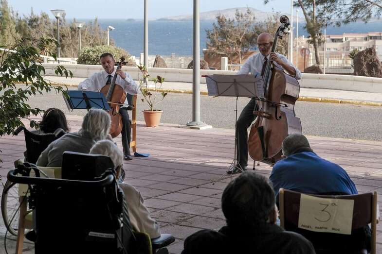 Telde.- Inserto dentro del programa OFGC 21 en los municipios de la Orquesta Filarmónica de Gran Canaria, la Residencia de Mayores Taliarte acogió el martes 21 de julio un concierto a cargo de Jozef Racz (violonchelo) y Christian Thiel (contrabajo), solistas del conjunto sinfónico del Cabildo de Gran Canaria.