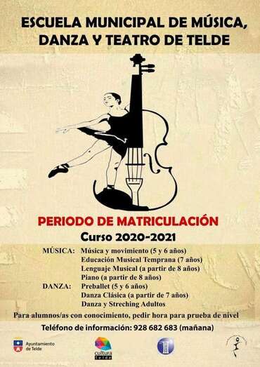 Telde.- La Concejalía de Cultura del Ayuntamiento de Telde ha abierto el plazo de matriculación para este curso 2020 - 2021 de las especialidades que se imparten en la Escuela Municipal de Música, Danza y Teatro, en el Teatro Municipal Juan Ramón Jiménez.