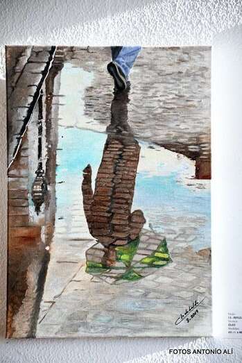 En esta muestra, Clodobaldo González ha querido "mostrar la doble vertiente en la percepción de la realidad de lo que vemos y sentimos, de lo externo y lo interno, así como la visión que nos da el agua cuando refleja matices de nuestro entorno y lo que nos puede hacer sentir".