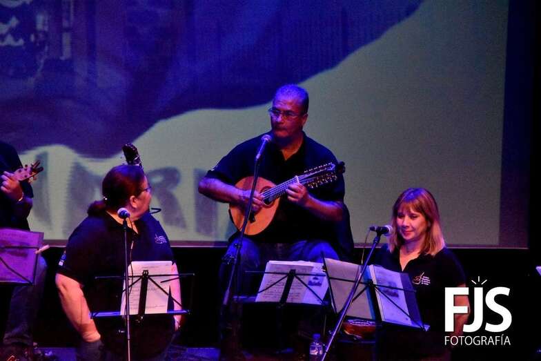 El público que acudió al coliseo teldense de la calle de Poeta Pablo Neruda transitó por el mundo a través de las piezas musicales interpretadas por el grupo de cuerda de la Escuela Municipal de Folclore y algunas de sus voces.