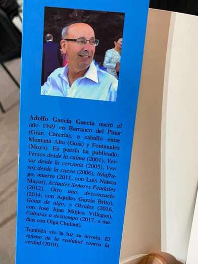 Telde.- Adolfo García García, fino poeta y novelista y narrador, socio de NACE, presentó esta noche en Telde su último poemario que lleva por título Poepsía. La cita cultural tuvo lugar en la ermita de San Pedro Mártir, sita en el conjunto monumental de San Juan.
