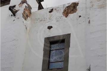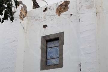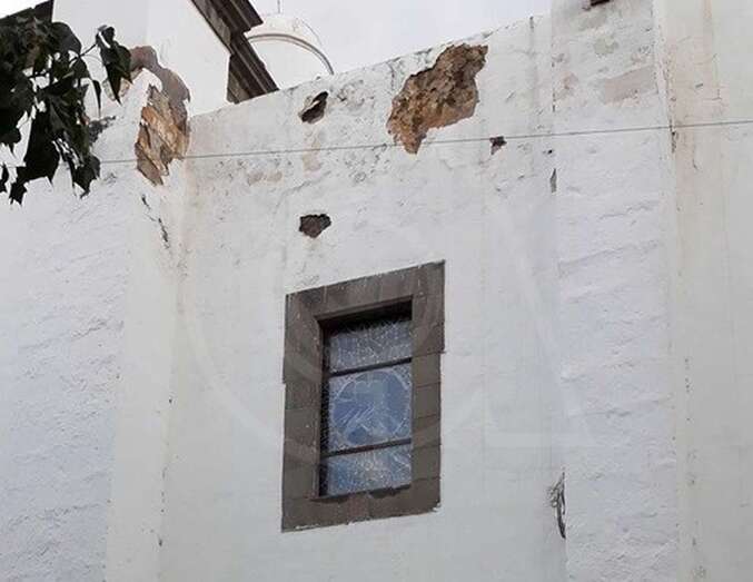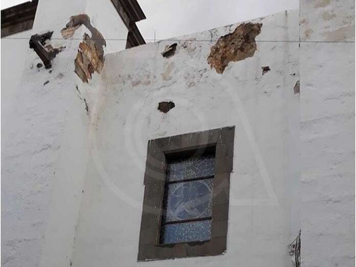 Telde.- El viento y las precipitaciones de las últimas horas con el paso de la borrasca Filomena han puesto al descubierto las deficiencias que presenta el enfoscado exterior del templo neoclásico de Los Llanos de Telde.