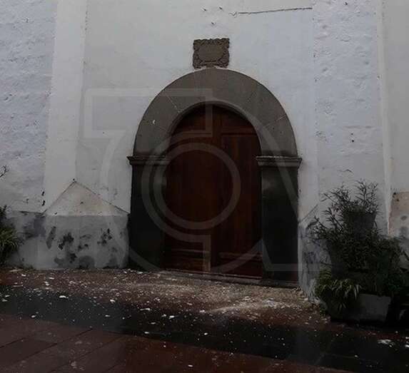 En esta jornada, el grave problema de humedades que afecta especialmente al frontis sur de la edificiación bajo la advocación de San Gregorio Taumaturgo causó el desprendimiento de trozos de su revestimiento sobre la calle peatonal de Rivero Bethencourt, una circunstancia que no provocó daños personales a los viandantes.