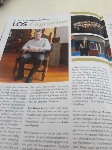 Hablamos con el presidente de Los Faycanes, Antonio Cejudo. La banda de música fue fundada en 1969 por un grupo de músicos apasionados a tiempo parcial que se abrieron camino en los corazones de las personas con una disciplina constante y mucha creatividad y apertura. Su repertorio comenzó con música folclórica tradicional. Canciones tradicionales posteriores (cancionero canario) de los grandes letristas y poetas canarios, como B. Néstor Álamo, Andrés Macías, Emilio Gómez, Juan Alberto Monzón y Pancho Guerra. Entonces desarrollaron una especie de folclore canario hispanoamericano.