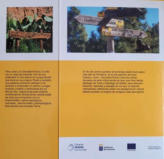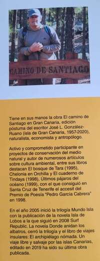 Así expresaba José Luis González Ruano, naturalista, escritor, poeta, antropólogo, buscador de caminos, su latido biológico y espiritual en el último tramo escrito en su obra. El Camino de Santiago en Gran Canaria. Un viaje a la isla interior. Excelente cuaderno de bitácora del viaje isla adentro, sus impresiones, observaciones y reflexiones a pie de la profunda, realista, emotiva y detallada visión en su relato de paisajes, geología, etnografía, gentes, pueblos y señales, en el mensaje de una personal experiencia por el camino jacobeo grancanario, que invita al lector a vivir y sentir dicho camino que lleva desde Santiago de Tunte a Santiago de Gáldar, por el corazón de la isla.
