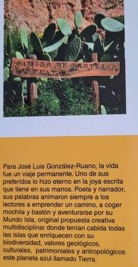 Para José Luis González Ruano, la vida fue un viaje permanente. Uno de sus preferidos lo hizo eterno en la joya escrita que tiene en sus manos. Poeta y narrador, sus palabras animaron siempre a los lectores a emprender un camino, a coger mochila y bastón y aventurarse por su Mundo Isla, original propuesta creativa multidisciplinar donde tenían cabida todas las islas que enriquecen con su biodiversidad, valores geológicos, culturales, patrimoniales y antropológicos este planeta azul llamado Tierra.