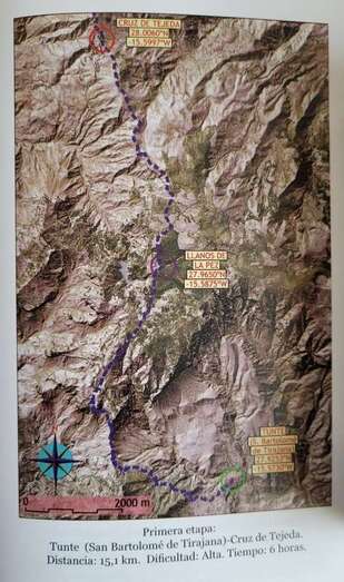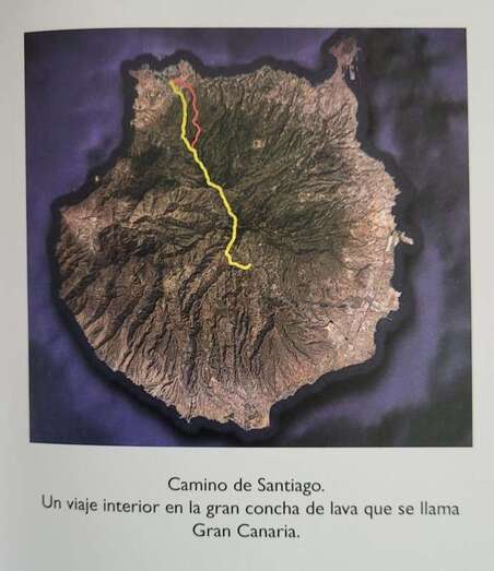 Un atractivo y bello estímulo para conocer a través de sus ocho capítulos, los tramos de senda que comprenden nuestro camino jacobeo insular: 1.Tunte, la semilla de un naufragio. 2. Camino de La Plata, el pie sobre la piedra. 3. Llanos de la Pez, árbol adentro. 4. Cruz de Tejeda, la brújula en la bruma. 5. Caldera de los Pinos de Gáldar, el paisaje encendido. 6. Majadales, fuga de la soledad. 7. Santa María de Guía, el rezo imaginado. 8. Templo de Gáldar, proa de una nostalgia azul.