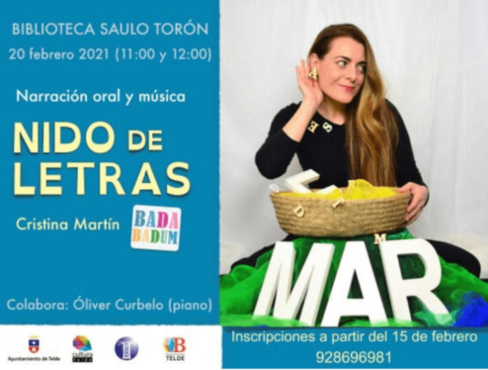 Esta sesión familiar está recomendada a partir de 4 años y está a cargo de Cristina Martín (Badabadum) con la colaboración de Óliver Curbelo al piano. Las inscripciones se podrán realizar a partir del 15 de febrero llamando al 928.69.69.81.