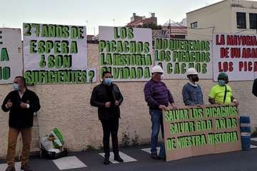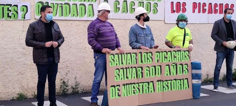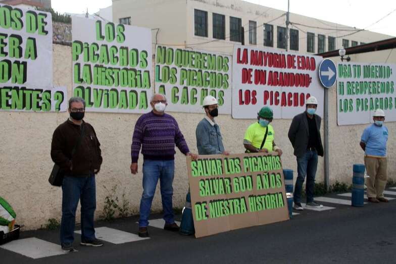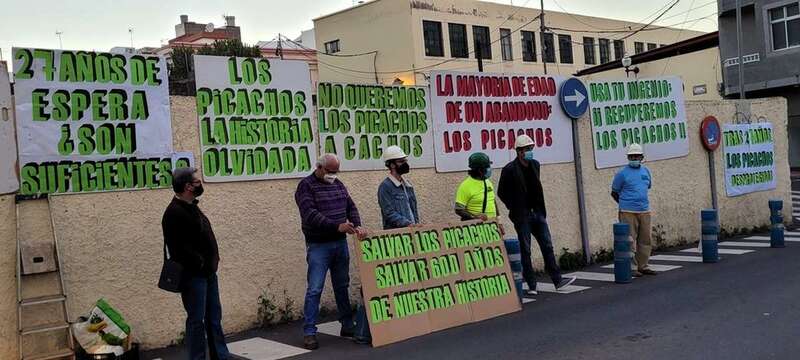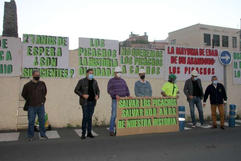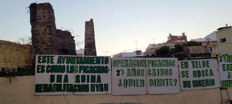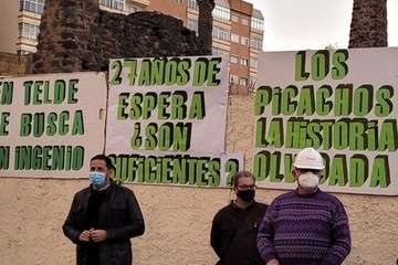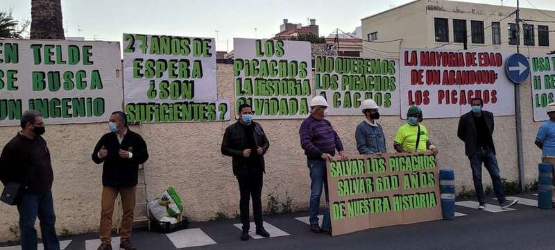 La tarde del miércoles 3 de marzo ante el yacimiento de Los Picachos, restos de las pilastras y muro del ingenio azucarero del siglo XVI ubicado en esta zona, hoy urbana, de la ciudad de Telde, que, como viene siendo frecuente cada año, se convoca una manifestación con el objeto de no cejar en la lucha por la rehabilitación y conservación de esta huella del patrimonio histórico industrial y arqueológico de Gran Canaria.