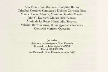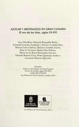 El Departamento de Ediciones del Cabildo Insular de Gran Canaria edita un interesante, documentado y amplio en sus diversas exposiciones historiográficas, gracias a la intervención de especialistas en las diferentes materias relacionadas con la historia y el arte, investigadores, historiadores, que con rigor estudian el desarrollo del cultivo de la caña y el azúcar en Canarias, recopilados en la obra, Azúcar y Mecenazgo en Gran Canaria. El oro de las Islas, siglos XV-XVI, que tuvieron lugar en la Casa de Colón en octubre de 2013, edición de la profesora titular de Historia de la Universidad de La Laguna, Ana Viña Brito.