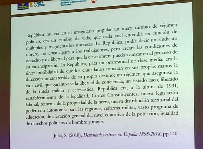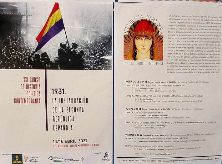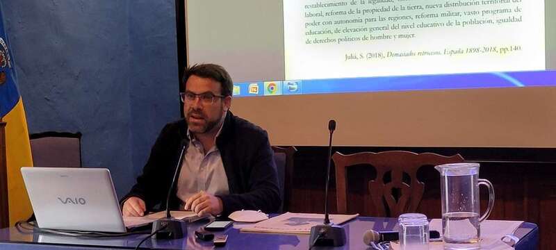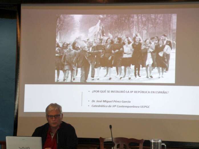 En la conferencia inaugural del curso que se desarrolla en la Casa-Museo León y Castillo, Pérez explicó cómo llegó la República el 14 de abril de 1931, desde la crisis de la Monarquía en primer lugar y desde las acciones de las distintas oposiciones a la Monarquía en los años anteriores.