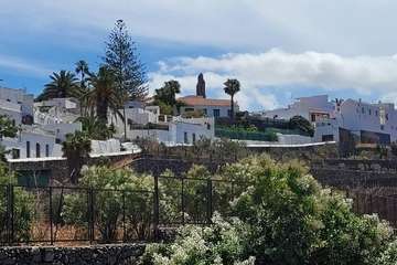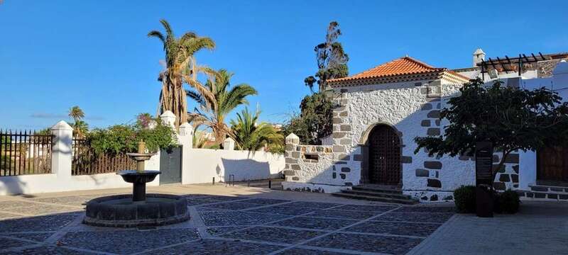 Las torres y campanas de San Juan nos llaman asomando su basilical presencia entre el palmeral que, desde este recorrido, se extiende por esta fértil vega, cercada por el Barranco Real, nos brinda un hermoso paisaje para admirar y captar su mensaje gráfico en el corazón, la mente y retenerlo para regresar y, como el poeta, escribir los versos más bellos dedicados a esta natural e histórica huella patrimonial de nuestra eterna urbe, antigua Telle y nueva ciudad de Telde. Gracias.