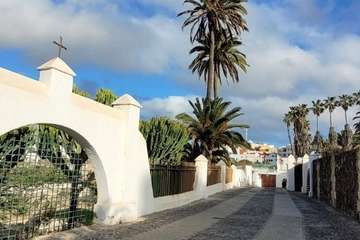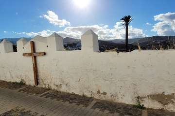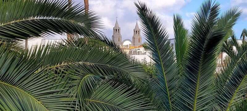 Un motivo para alzar nuestra mirada y, tras los muros, en las sombras de la tarde dibujadas por la altivez de las palmeras, descubrir este bello escenario y dar gracias como lo hicieran vecinos, romeros, peregrinos, frailes, campesinos, obreros, antiguos moradores, buscando sus propios destinos.