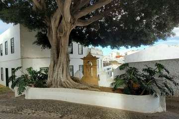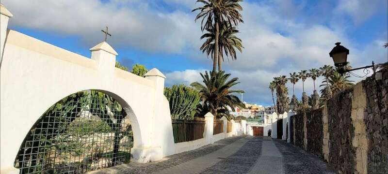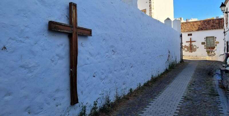 Por el barrio conventual de San Francisco, mis pasos me llevan sorteando en cada rincón la historia de un pasado escrito sobre sus empedradas calles, de enjalbegadas fachadas, cruces de penitencia y rogativas, iglesia conventual, espadaña, campanario en el aire llamando a oración, almenas, plaza y fuente, árboles, palmeras que apuntan al cielo como si todo alrededor elevara una oración en el silencio del día, a la caída de la tarde o, entrada la noche, con su misterioso mensaje de recogimiento, el rumor lírico de los versos de poetas que aquí habitaron, clamando la continuidad de su espíritu de quietud y esperanza que en sus creaciones nos legaron.