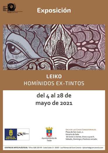 Telde.- La sala de exposiciones de las Casas Consistoriales de Telde exhibe la muestra del artista Víctor Jesús García Martínez, Leiko, titulada Homínidos extintos, que podrá visitarse hasta el 28 de mayo, de lunes a viernes, de 8.00 a 15.00 horas.