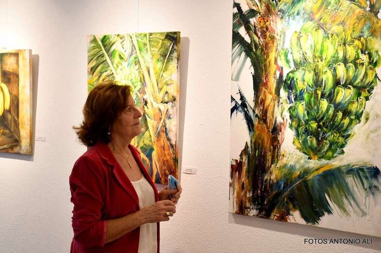 Telde.- La artista Elena Robayna Abreut regresa con una exposición al municipio después de 16 años y cerca de un centenar de muestras. Lo hace en el Teatro Municipal Juan Ramón Jiménez, con una colección de cuadros que lleva por título Nuestros cultivos, inaugurada esta tarde.