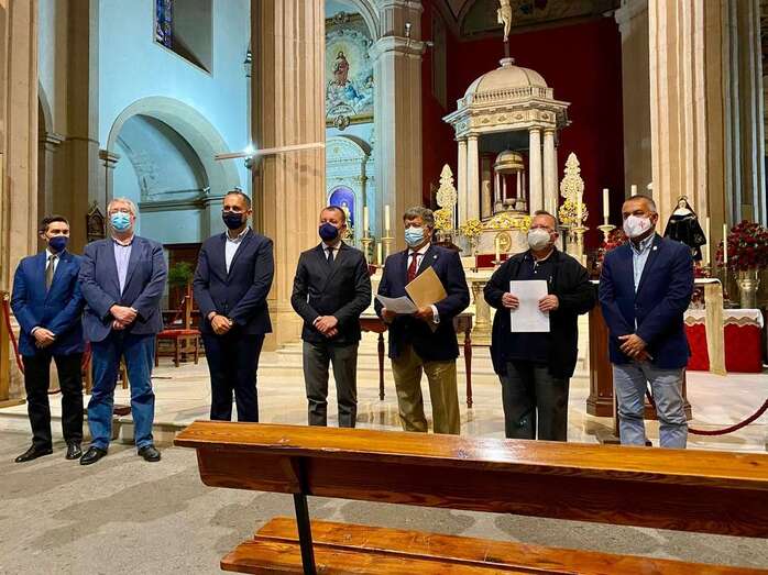 Tal y como avanzó TELDEACTUALIDAD, la ceremonia de donación por parte del artista de la escultura de 90 kilos de pesos y 92 centímetros de alto, 32 cm de ancho y 15 de profundidad tuvo lugar anoche en el templo matriz de Gáldar, en el marco del 243 aniversario de la colocación de la primera piedra de esta construcción religiosa.