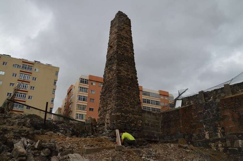 Las labores se iniciaron esta mañana con la retirada de los escombros que sitúan al pie de las pilastras por un grupo de operarios de Arqueocanarias coincidiendo con la visita al lugar de autoridades públicas para dar cuenta de la iniciativa que implica a Gobierno de Canarias, Cabildo de Gran Canaria, Ayuntamiento y propietarios del solar donde se encuentran Los Picachos para la rehabilitación de este importante legado del patrimonio cultural de Telde y de Gran Canaria, testigo de la industria azucarera que se implantó en algunas islas del Archipiélago en la centuria siguiente a la Conquista.