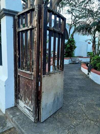 Telde.- El estado de la puerta metálica de acceso al Rincón Plácido Fleitas desde la plaza de San Juan y del portalón de madera del Parque Infantil Santa Rosalía que da a la calle de Duende manifiesta una clara desidia institucional por el mantenimiento del entorno del conjunto histórico de la ciudad.