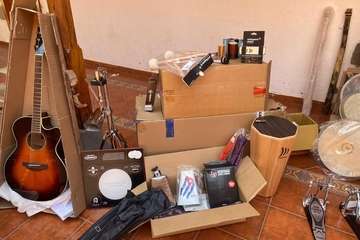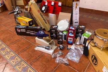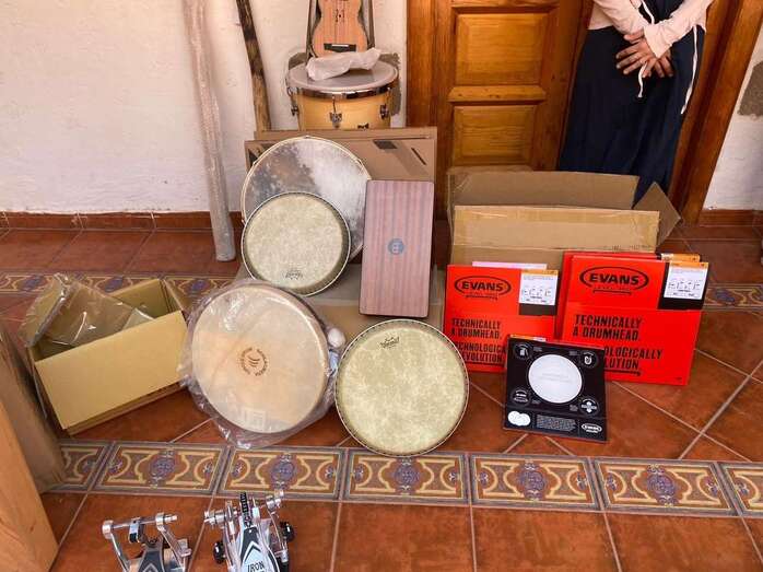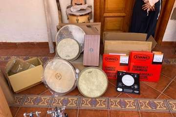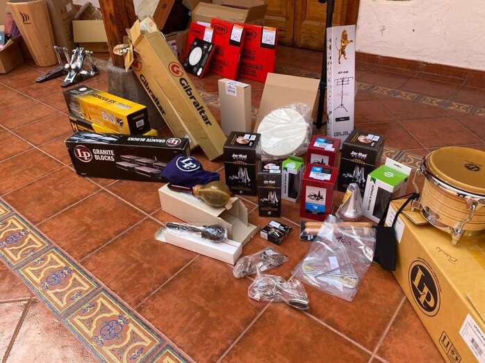 El material adquirido expuesto en el patio de la Escuela Municipal de Música/TA. El material adquirido expuesto en el patio de la Escuela Municipal de Música/TA.
