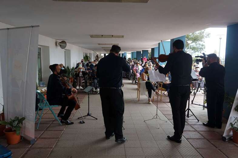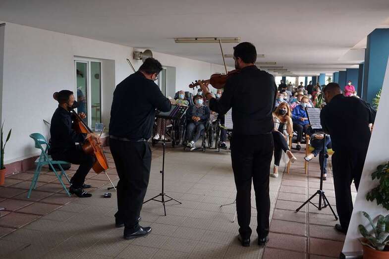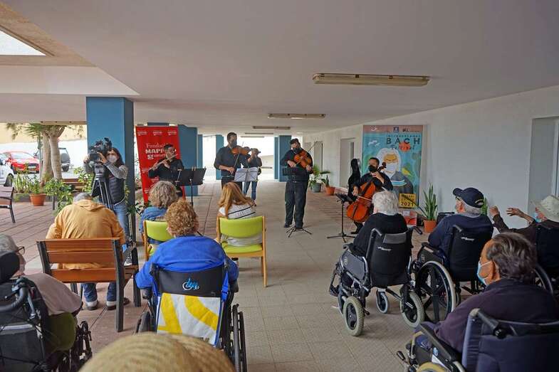 Telde.- Más de 70 usuarios de la Residencia de Taliarte, adscrita al Instituto de Atención Social y Sociosanitaria del Cabildo de Gran Canaria, asistieron al concierto organizado por el International Bach Festival Canarias dentro de su Proyecto "La música te acompaña", una actividad que tiene como objetivo acompañar y apoyar, a través de la música en directo, a los usuarios y profesionales en los hospitales y centros sociosanitarios de Gran Canaria. Esta novedosa fórmula aporta, a través de diferentes actividades, beneficios recreativos, terapéuticos, emocionales y de salud, especialmente en tiempos de pandemia.