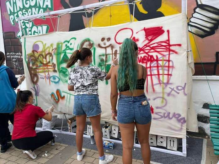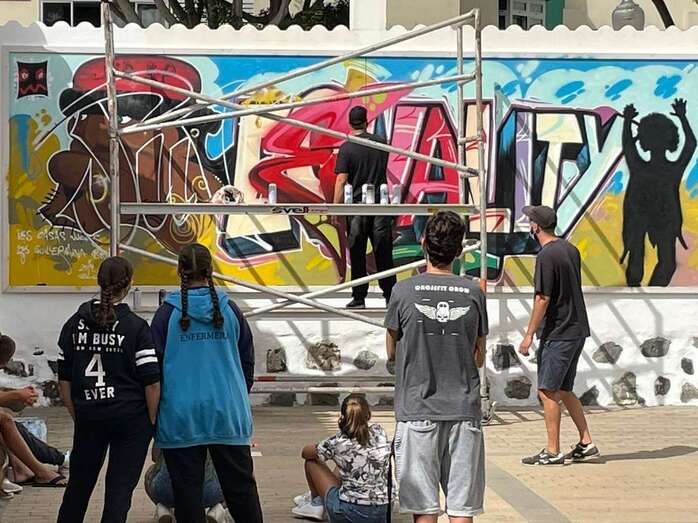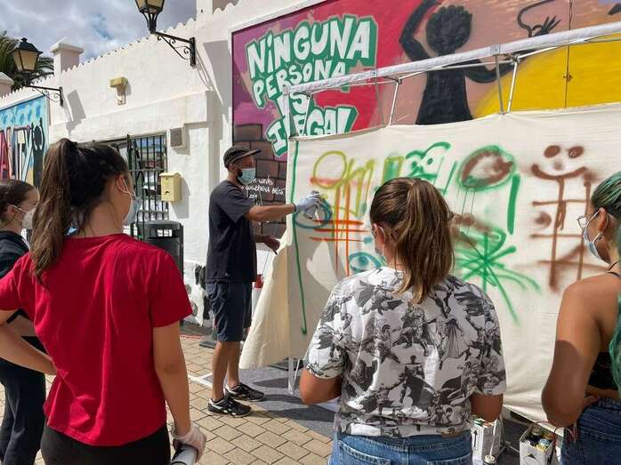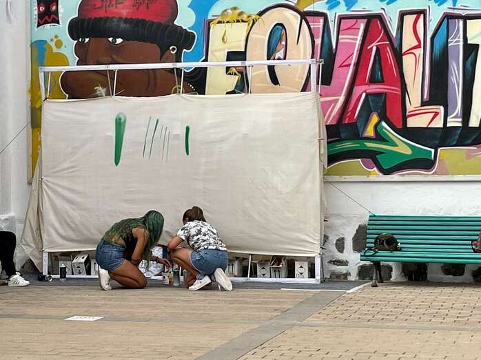 Unos 20 jóvenes participaron este miércoles y jueves en el taller de grafiti organizado por el Ayuntamiento de Telde para conmemorar el Día Internacional de la Juventud, una jornada que ha estado marcada por la reinvindicación de la igualdad y el derecho a oportunidades de futuro.