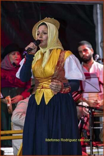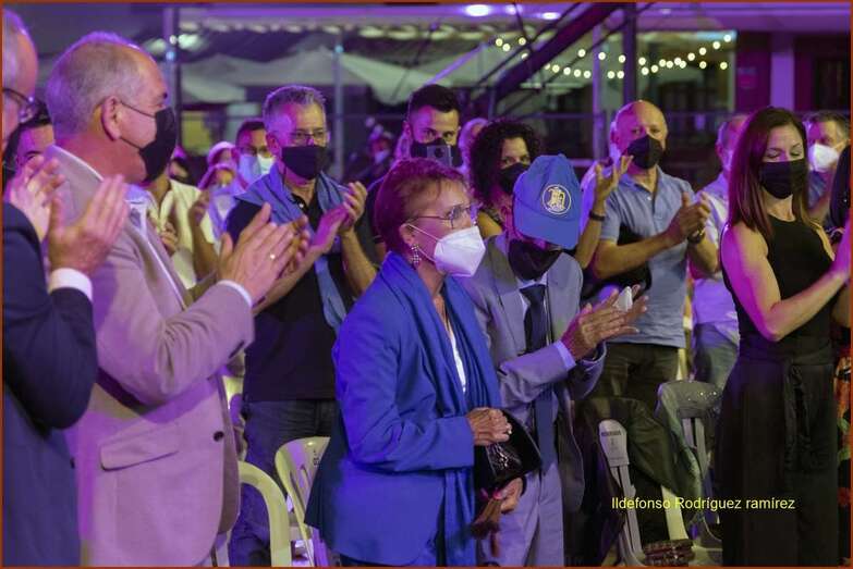 ‘La voz de la isla’ recibió una cerrada ovación del público puesto en pie presente en la plaza, que disfrutó de un animado popurrí de canciones que hicieron famosa a Mary Sánchez que fue interpretado por la parranda dirigida para la ocasión por el teldense Josito Suárez.