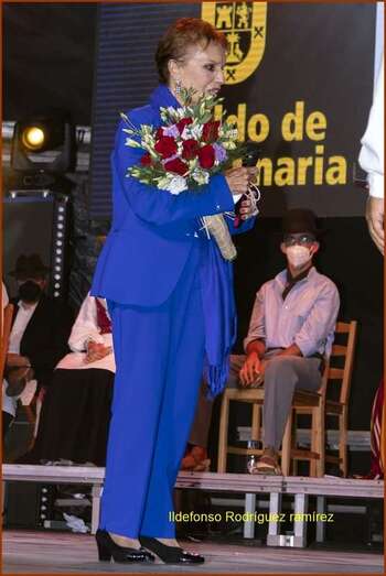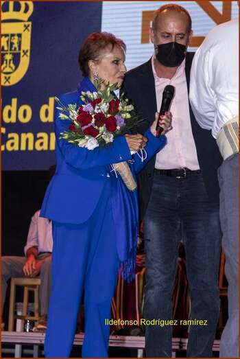 Una emocionada Mary Sánchez agradeció en Teror el tributo que le dedicó en la noche del lunes, día 6 de septiembre, el Cabildo grancanario en el marco de la 29º edición del Festival Folclórico de Gran Canaria.