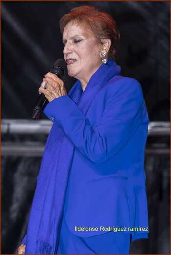La popular cantante de 87 años subió al escenario al inicio del evento que impulsó la Fundación Canaria Nanino Díaz Cutillas para recibir distintos obsequios que fueron entregados por el director insular de la Consejería de Cultura del Cabildo, Francisco Bravo de Laguna, y el alcalde de Teror, Sergio Nuez.