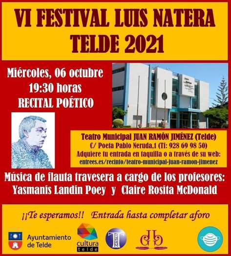 El poeta Luis Natera es uno de los grandes protagonistas de la programación cultural de Telde para esta semana con dos actos enmarcados en la sexta edición del festival que lleva su nombre que se realizarán en el Teatro Municipal Juan Ramón Jiménez.