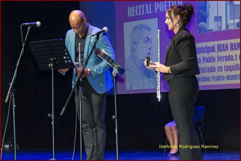 A través de la selección de textos se realizó un recorrido al trabajo lírico de Natera que está recogido en una docena de libros. Poco menos de una hora de duración dio tiempo para tal cantidad de versos recitados, incluyendo cuatro magníficas piezas musicales tocadas con flautas traveseras por el dúo formado por Yasmanis Landin Poey (profesor de dicho instrumento en la Escuela Musical de Música, Danza y Teatro de Agüimes) y por Claire Rosita McDonald (Profesora de Música del British School of Gran Canaria).