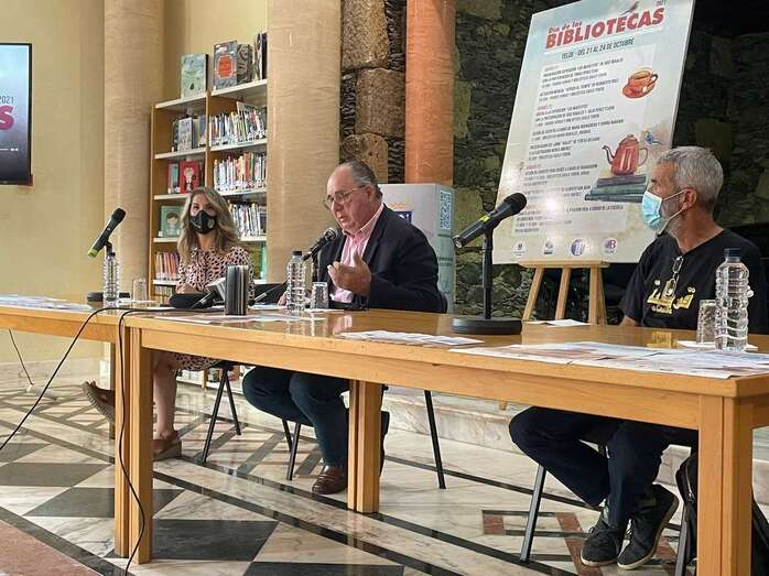 El concejal de Cultura, Juan Martel, presentó este viernes el conjunto de eventos diseñados por el servicio de Bibliotecas Municipales de la empresa pública Gestel "para destacar el papel de las bibliotecas de diferente tipología como espacios libres, diversos y abiertos para el acceso a la cultura y el conocimiento, a partir de la lectura y del conjunto de recursos que permiten el aprendizaje y posibilitan el descubrimiento de otras ideas, otras personas, otras culturas y otros mundos". Junto a él estuvieron los artistas José Rosales y Gisele Chaulet.