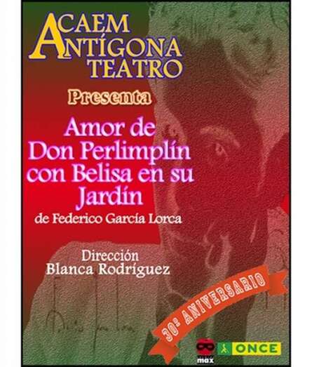 La compañía Acaem Antígona, vinculada a la ONCE, representa este jueves, a las 20.00 horas, en el Teatro Municipal Juan Ramón Jiménez de Teñde Amor de Don Perlimplim y Belisa en su jardín, basada en una obra de Federico García Lorca.