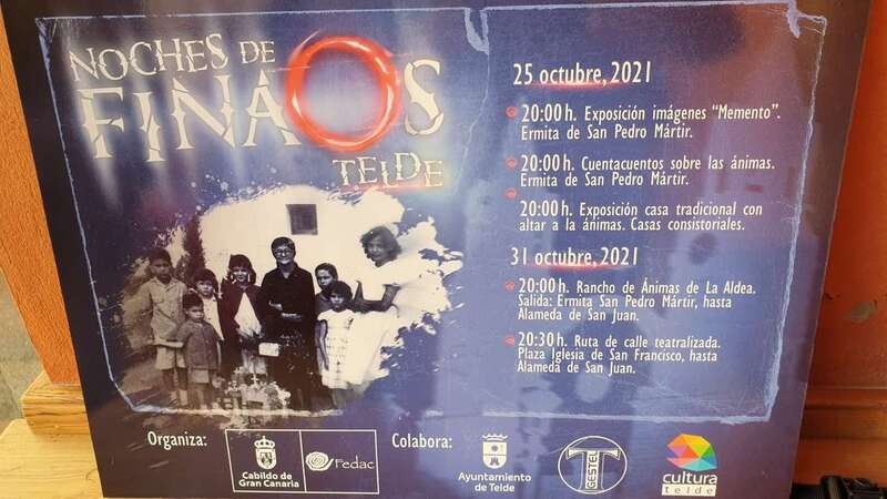 Los eventos, para los que la organización cuenta con el apoyo de la Fundación para la Etnografía y el Desarrollo de la Artesanía Canaria (Fedac) del Cabildo, se realizarán en el conjunto histórico-artístico de Telde, en los barrios de San Juan y San Francisco. Y consisten en dos exposiciones sobre la cultura de la muerte, los altares y las ceremonias fúnebres en Canarias, una sesión de cuentacuentos sobre las ánimas, la actuación de un rancho de ánimas y una ruta teatralizada.
