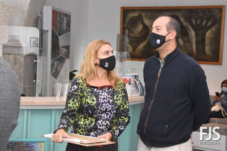 La muestra Reencuentro de la artista Yasmina Martínez se exhibe desde esta tarde en la sala de exposiciones de las Casas Consistoriales de Telde, donde permanecerá hasta el próximo 28 de noviembre. Al acto asistió el concejal de Cultura, Juan Martel, y el gerente de Gestel, Jesús Suárez.