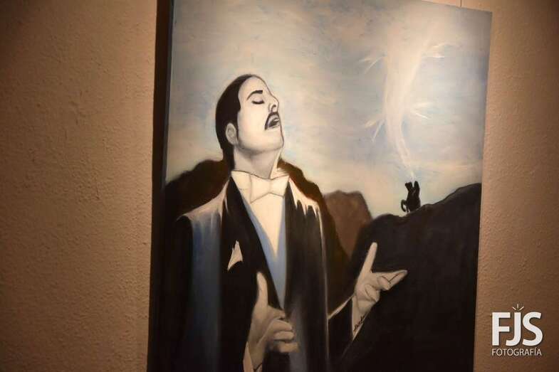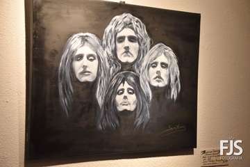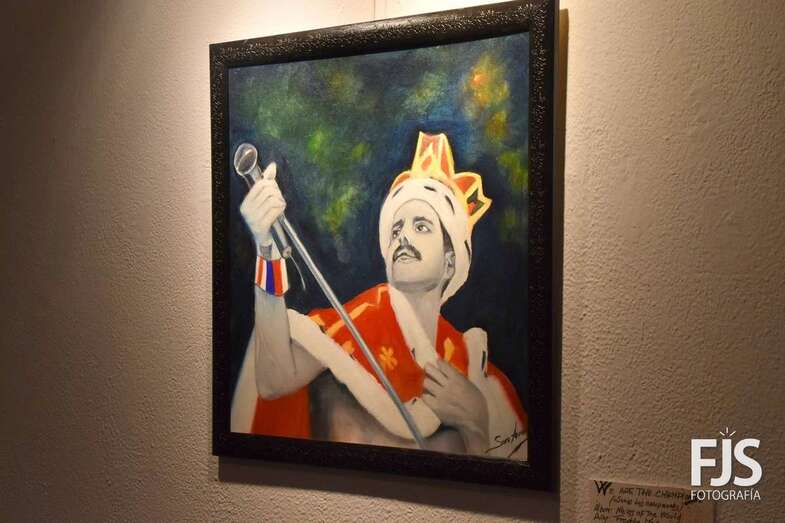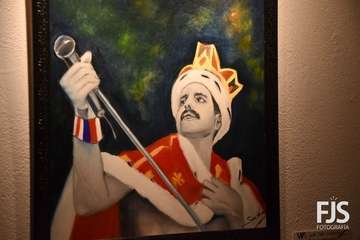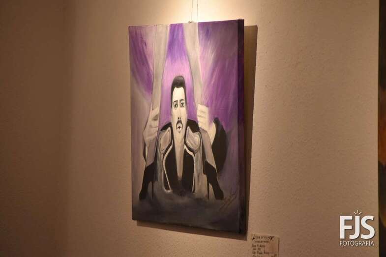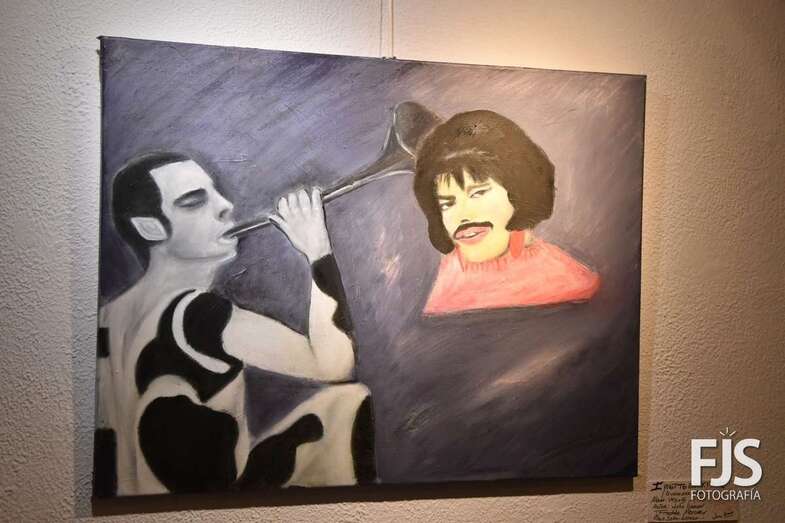 Esta pintora e ilustradora grancanaria brinda con esta obra realizada en óleo sobre lienzo y tabla un homenaje a Freddie Mercury, vocalista de Queen, en el 30 aniversario de su fallecimiento. Para ello preparó que sonaran algunos de los temas más conocidos de esta banda en la inauguración, acto al que asistieron el concejal de Cultura, Juan Martel, y el gerente de la empresa pública Gestel, Jesús Suárez, así como los ediles Lidia Mejías y Jonay López.