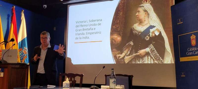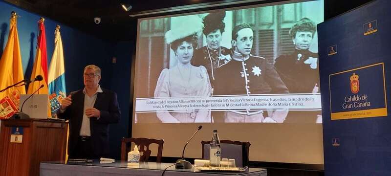La Casa-Museo León y Castillo acogió el pasado miércoles una charla del historiador y cronista oficial de la ciudad de Telde, Antonio María González Padrón, sobre la reina Victoria Eugenia de Battember, esposa de Alfonso XIII.