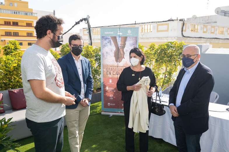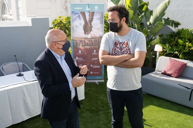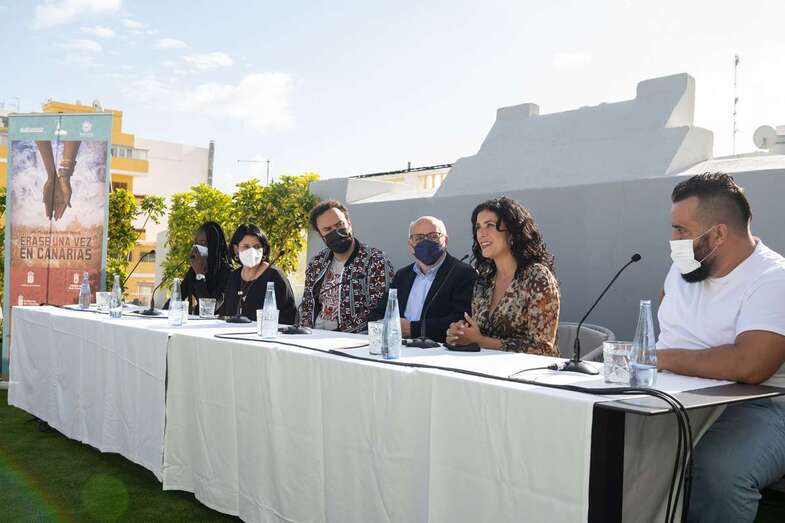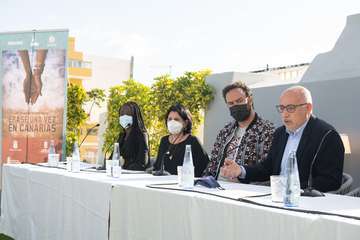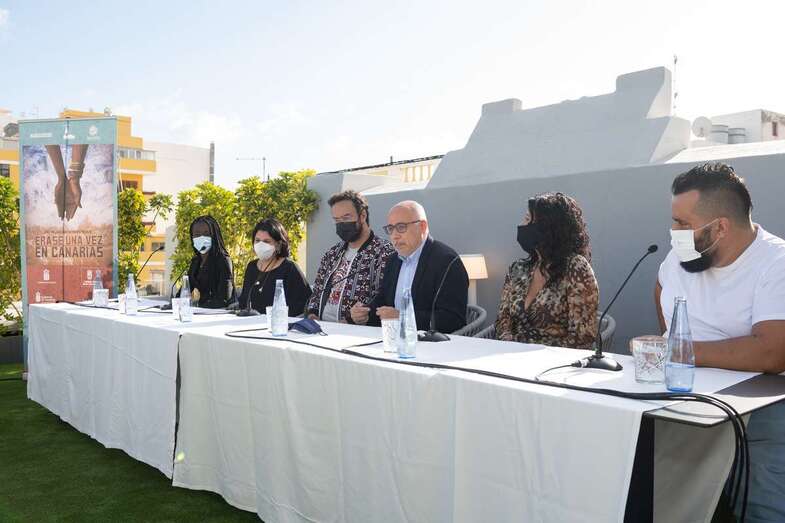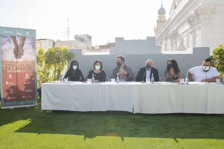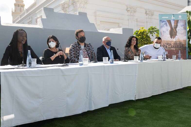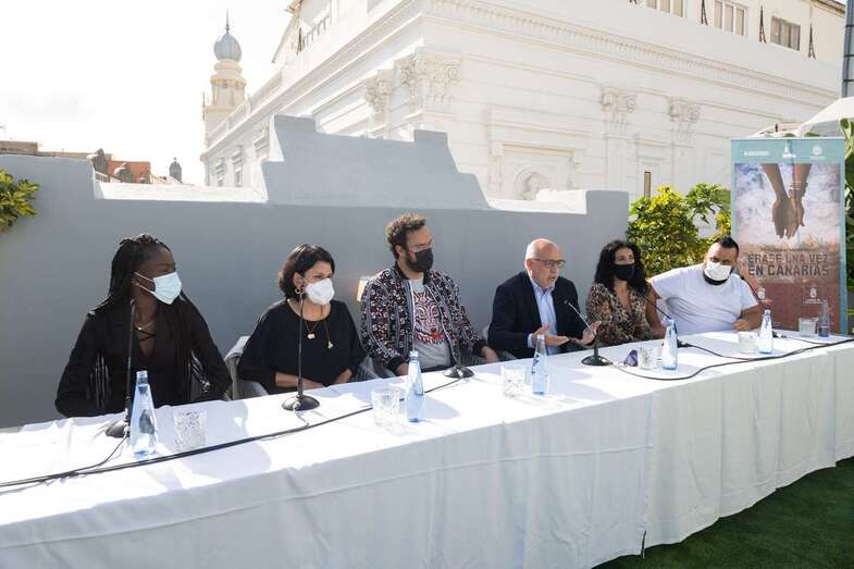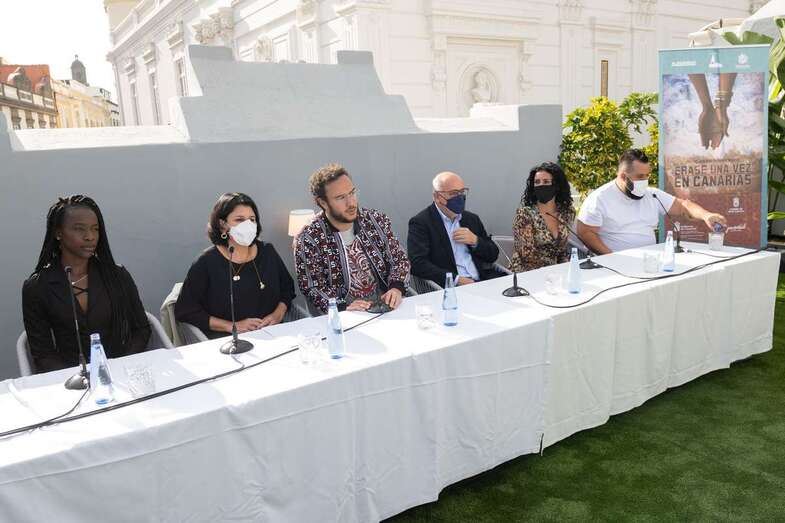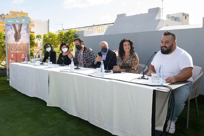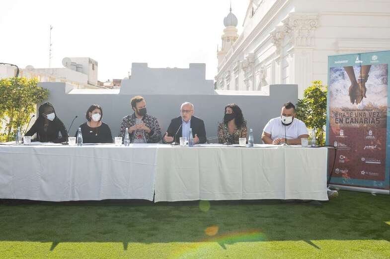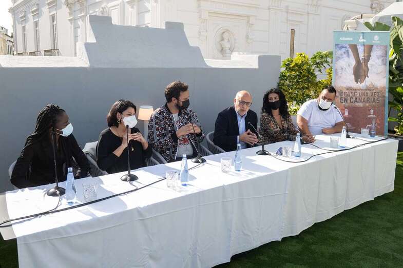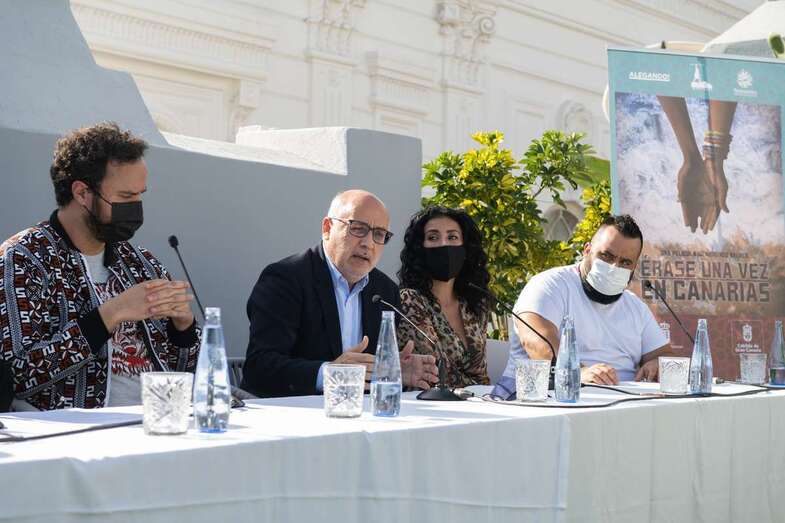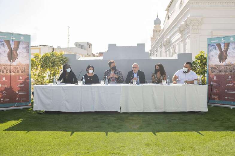 Ravelo, junto a los actores Diarra Diouf, que interpreta a Nola; Yanely Hernández, Pino; y Kike Pérez, Manuel; y al presidente del Cabildo de Gran Canaria, Antonio Morales, y la directora general autonómica de Patrimonio Cultural, María Antonia Perera, han adelantado este martes el contenido de la película, que comenzará a rodarse en marzo de 2022 y que espera ser un "antídoto contra el odio, la xenofobia y el racismo" cuando se estrene dentro de un año.