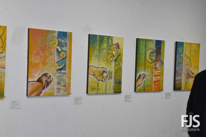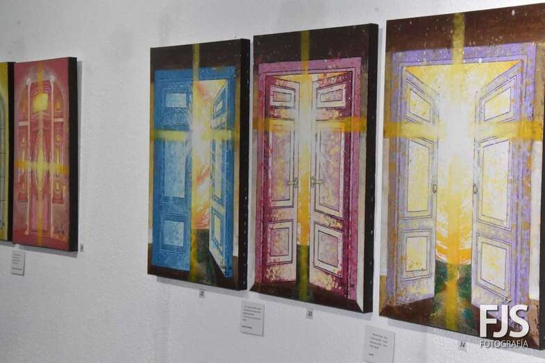 El artista Felipe Juan abrió público este viernes por la tarde en las Casas Consistoriales de Telde su nuevo proyecto, DoorLuz, en el que fusiona la poesía y la pintura.