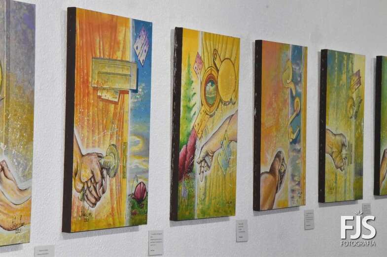 La exposición está formada por 36 piezas realizadas en madera sobre tela utilizando técnicas mixtas, acompañadas por unos 27 poemas.