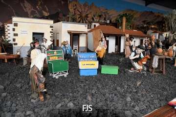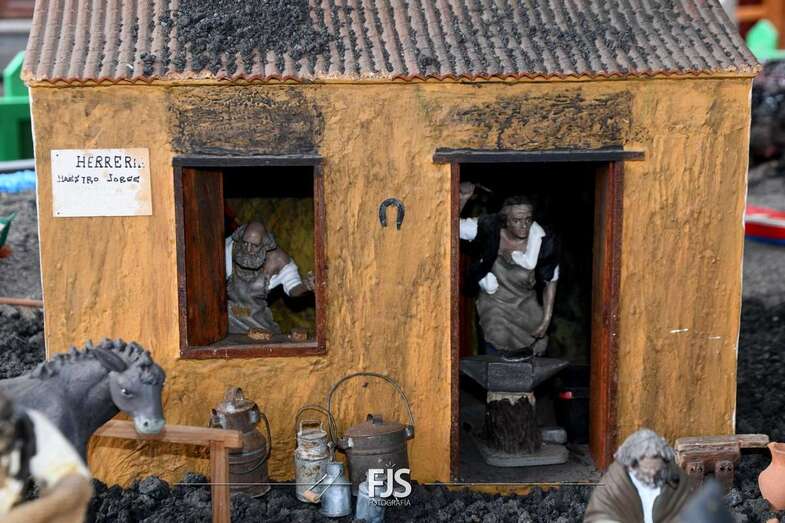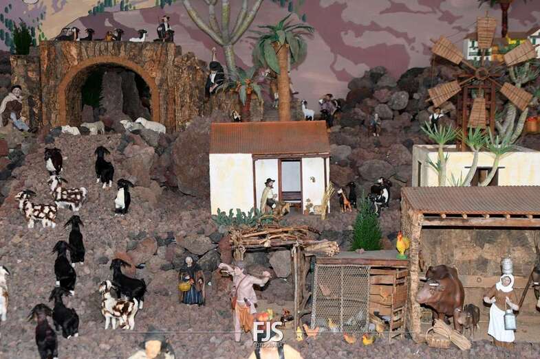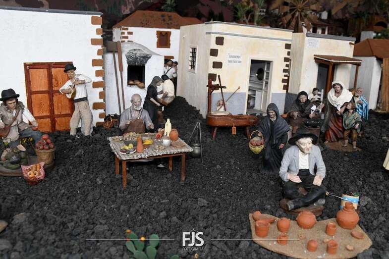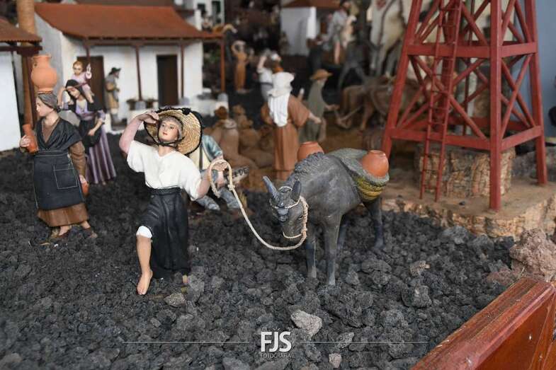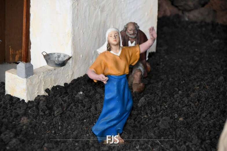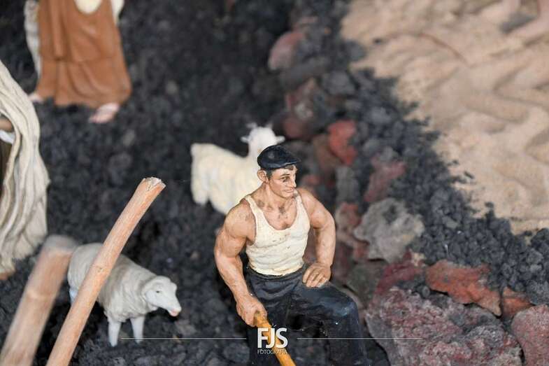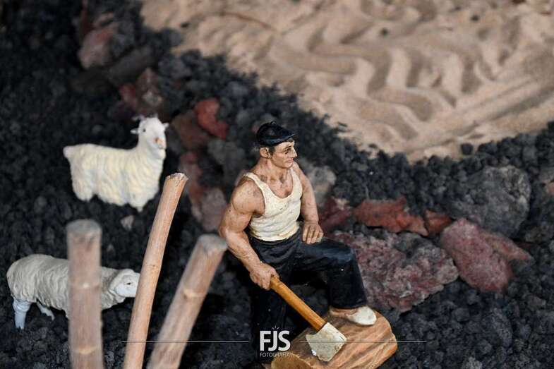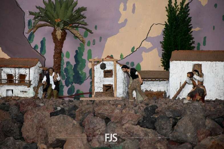 Tal y como adelantó TELDEACTUALIDAD, esta obra artesanal está dedicado a la isla de La Palma con la representación de la erupción volcánica de Cumbre Vieja, uno de los principales atractivos de la edición de este año, en la que un mural del desaparecido acuarelista Elías Marrero ambienta el belén en un entorno palmero junto a las más de 500 piezas que lo conforman.