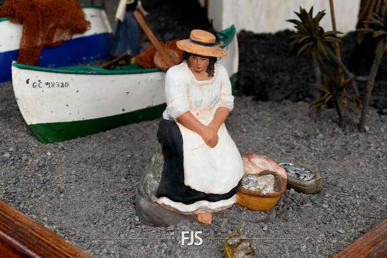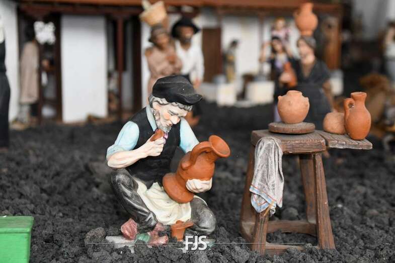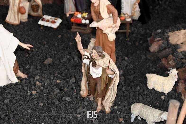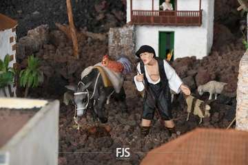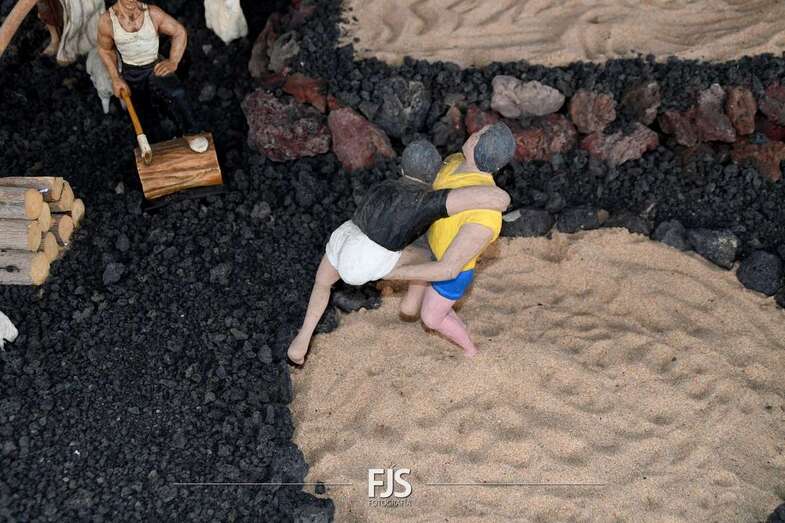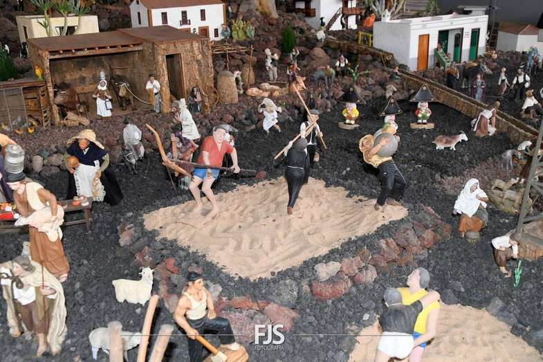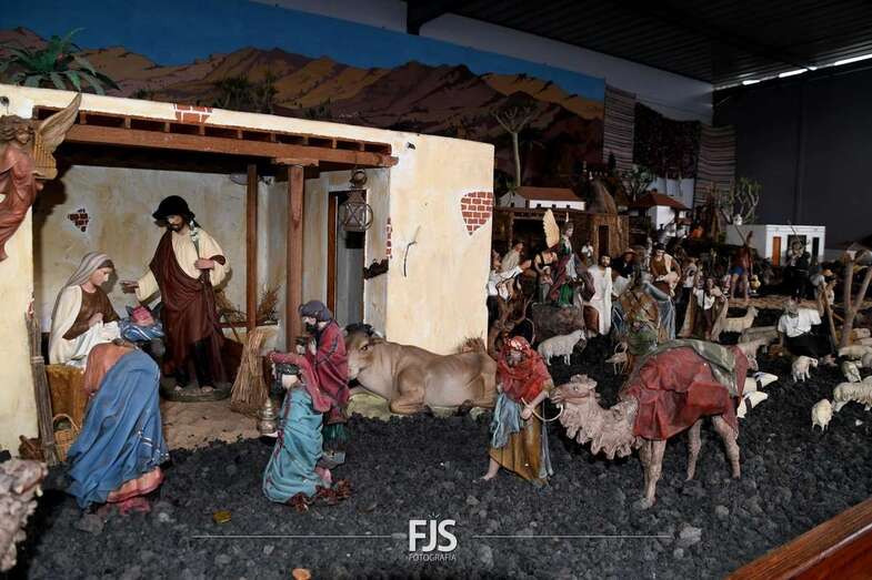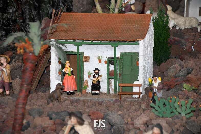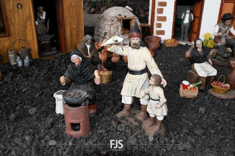 Tal y como adelantó TELDEACTUALIDAD, esta obra artesanal está dedicado a la isla de La Palma con la representación de la erupción volcánica de Cumbre Vieja, uno de los principales atractivos de la edición de este año, en la que un mural del desaparecido acuarelista Elías Marrero ambienta el belén en un entorno palmero junto a las más de 500 piezas que lo conforman.